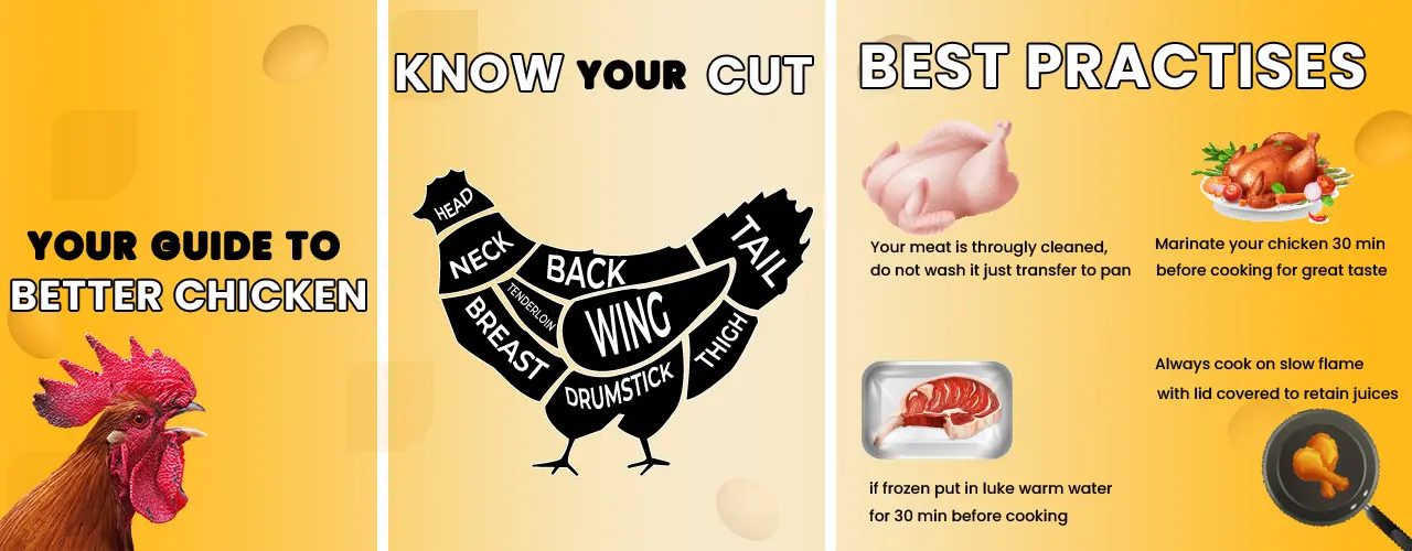 great taste begin with hygenically sourced meat. Our expert team cuts the meat in such a way so as to retain its natural juices in a hygenic environment. Our meat is contmination free . You can directly transfer the meat from our packet to your pan .You need not to wash it again as it will loose its natural juices which we have preserved for you .You just add you magic to your dishes .